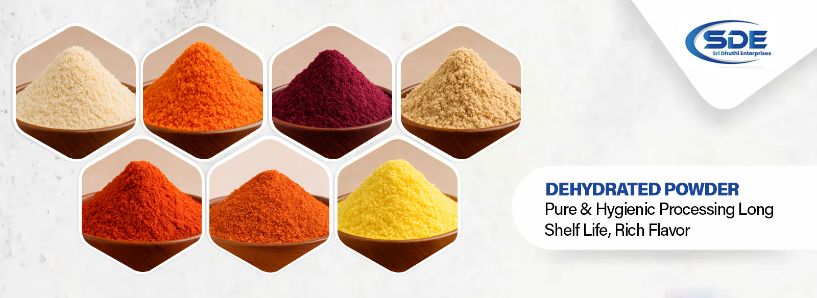 Sridhuthi Enterprises supplies premium dehydrated carrot powder with natural color and sweet flavor. Ideal for food blends, baby foods, and beverages — shelf-stable, pure, and nutrient-rich.
