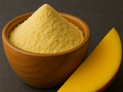 Sridhuthi Enterprises provides premium dehydrated-dried mango powder, capturing the rich taste and aroma of ripe mangoes.